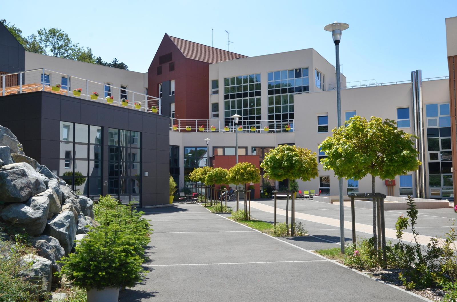 Établissement moderne avec terrasses et environnement boisé, propice à la qualité de vie au travail.